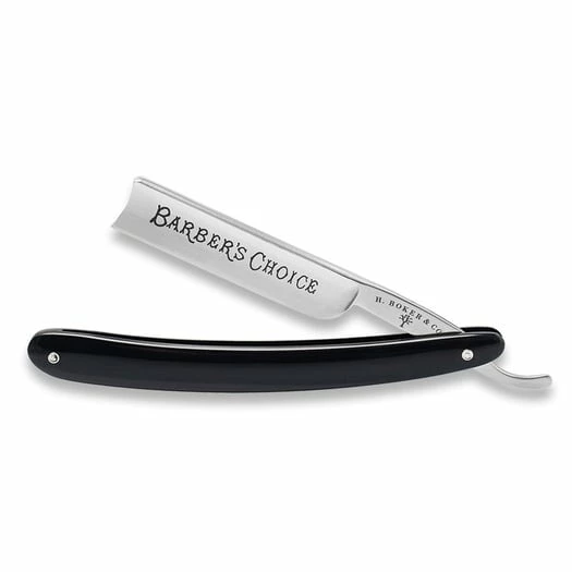 The re-release of the historic Boker Barber’s Choice has been a matter of the heart for us. In the pre-war era, the classic straight razor was considered the first choice for barbers who wanted to use a knife for all occasions, thus providing the best possible flexibility for shaving. Consequently, the razor uses a 5/8 inch wide blade with a Spanish head so that even impressive contours can be shaved out. The Barber’s Choice lettering adorns the front of the blade according to a historical model and is rounded off by the classic H.Boker & Co logo on the blade’s edge. Only on the basis of a historical original knife was it possible to carry out an elaborate restoration of the lettering, which then found its final and detailed implementation in a multi-layer laser process. The satin-finished blade is made of resistant carbon steel and is characterised by high edge retention. The black handle is made of indestructible plastic and is therefore very easy to clean, not only for barbers. The two nickel silver studs decorate the handle in a harmonious way. Limited to 300 pieces, the Boker Barber’s Choice comes supplied with a certificate of authenticity and historical packaging. Handmade in the Boker Knife Manufactory in Solingen.