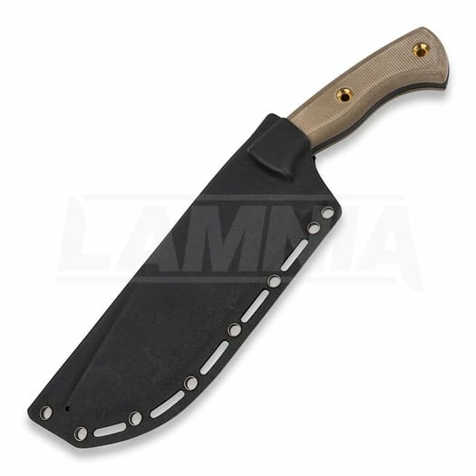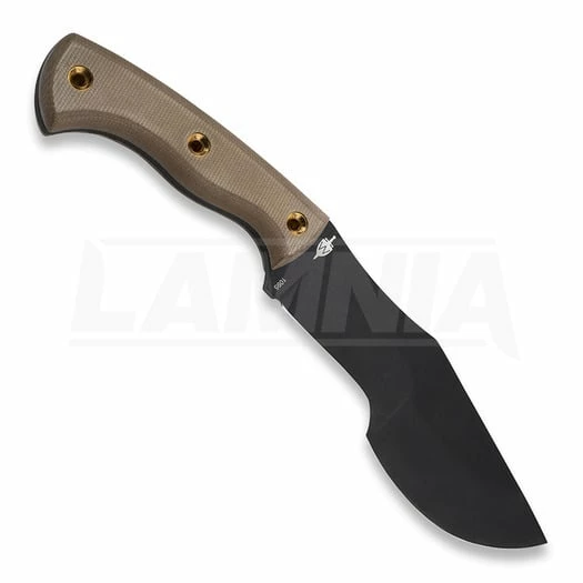 Designed by Dave Wenger, the Boker Plus Mini Tracker quickly became a favorite of the camping and bushcraft community, as the sturdy outdoor knife with its massive blade made of 1095 carbon steel and corrosion-resistant powder coating still convinces all along the line. Here comes the big brother, the full size Boker Plus Tracker. Same materials, same features, unparalleled performance! The front-heavy blade of the massive survival knife is equipped with two different grinding levels and is ideal for chopping, cutting, scraping, digging and levering. The perfect balance of blade thickness and length, as well as the ergonomic shape of the finely textured micarta handle scales, allow for fatigue-free work. The handle of this full tang kife is equipped with three decorative hollow brass rivets, the rear one can be used as a lanyard hole. Supplied with belt adapter and custom-fit Kydex sheath.