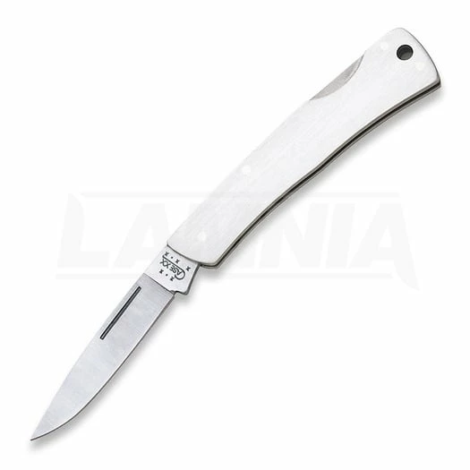 M1059L SS pattern. 3.125″ closed. Stainless drop point blade. Gray brushed stainless handle. Lanyard hole. An ideal knife for the executive pocket, briefcase or purse.