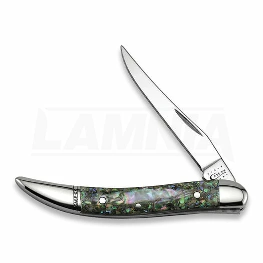 810096SS pattern. 3″ closed. Stainless long clip blade. Abalone handles with nickel silver bolsters. Cap end bolster features Case XX laser engraving.