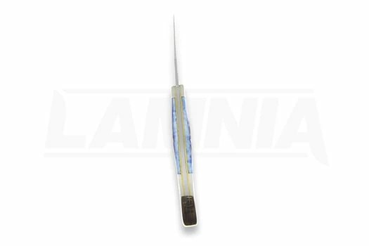 Stainless long clip blade. Blue jigged bone handles nickel silver bolsters and Case USA inlay shield.