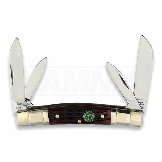 3.63″ (9.22cm) closed. Satin finish carbon steel twin pen, sheepsfoot, and spear blades. Brown jigged bone handle. Nickel silver bolster(s). Inlay shield.