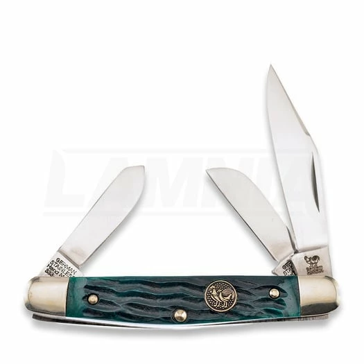 Closed: 3.25″; Blade: Stainless l Standard Edge l Mirror Polish Finish; Other Info: Nickel Silver Bolsters l Inlay Shield. Clip, sheepfoot, and pen blades. Bone handles.