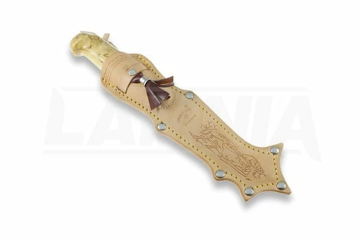 The leather tassel at the tip of the sheath depicts the tuft of hair on the tip of the ears of a lynx. It said to frighten away the bad spirits so that the knife will be used only for peaceful purposes.