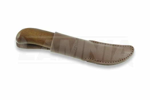 The Roselli UHC Bearclaw is a small, but also a very versatile knife. It is suited for cutting as well as whittling and thanks to UHC-nanosteel, the Bearclaw will maintain its sharpness when properly handled. Due to its small size, the Bearclaw fits in a pocket and is easily carried along. The handle is made from heat treated birch and coated with linseed oil to ensure a firm grip even when wet. The Bearclaw comes with a handcrafted sheath made from tanned leather.
